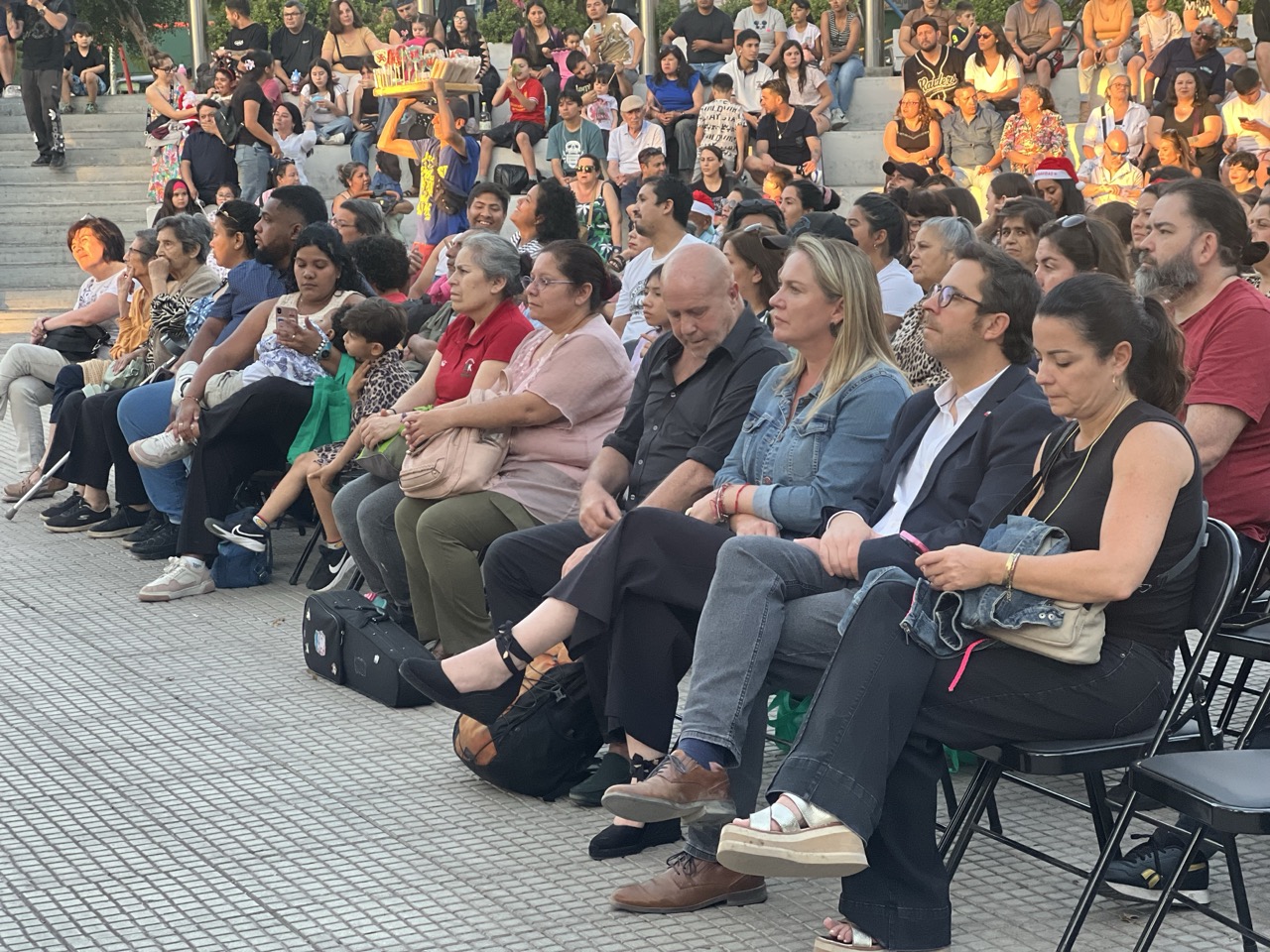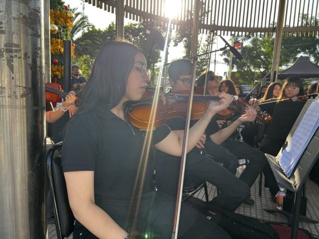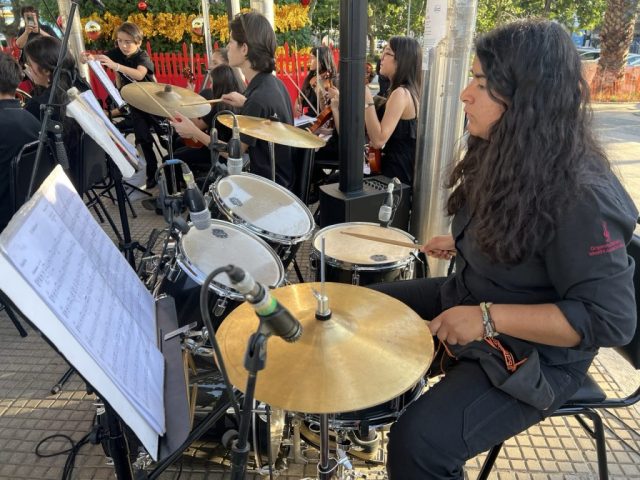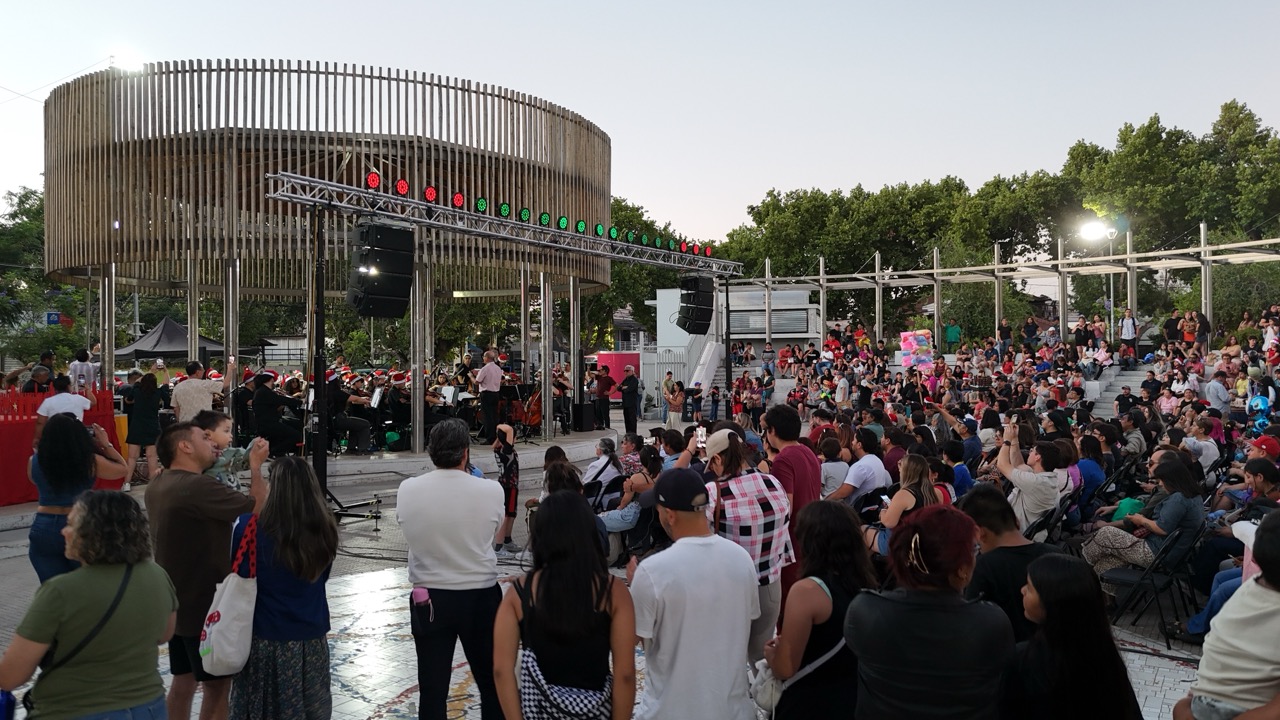 La Orquesta Sinfónica Infantil y Juvenil de Colina se presentó sobre el escenario interpretando un repertorio especial de música navideña y piezas clásicas, generando un ambiente festivo que fue acompañado por la comunidad en un evento abierto y gratuito.