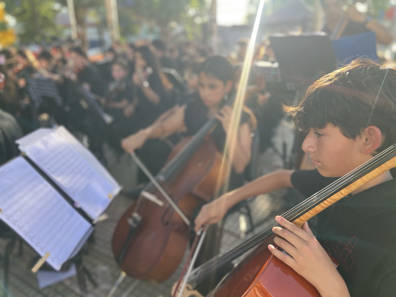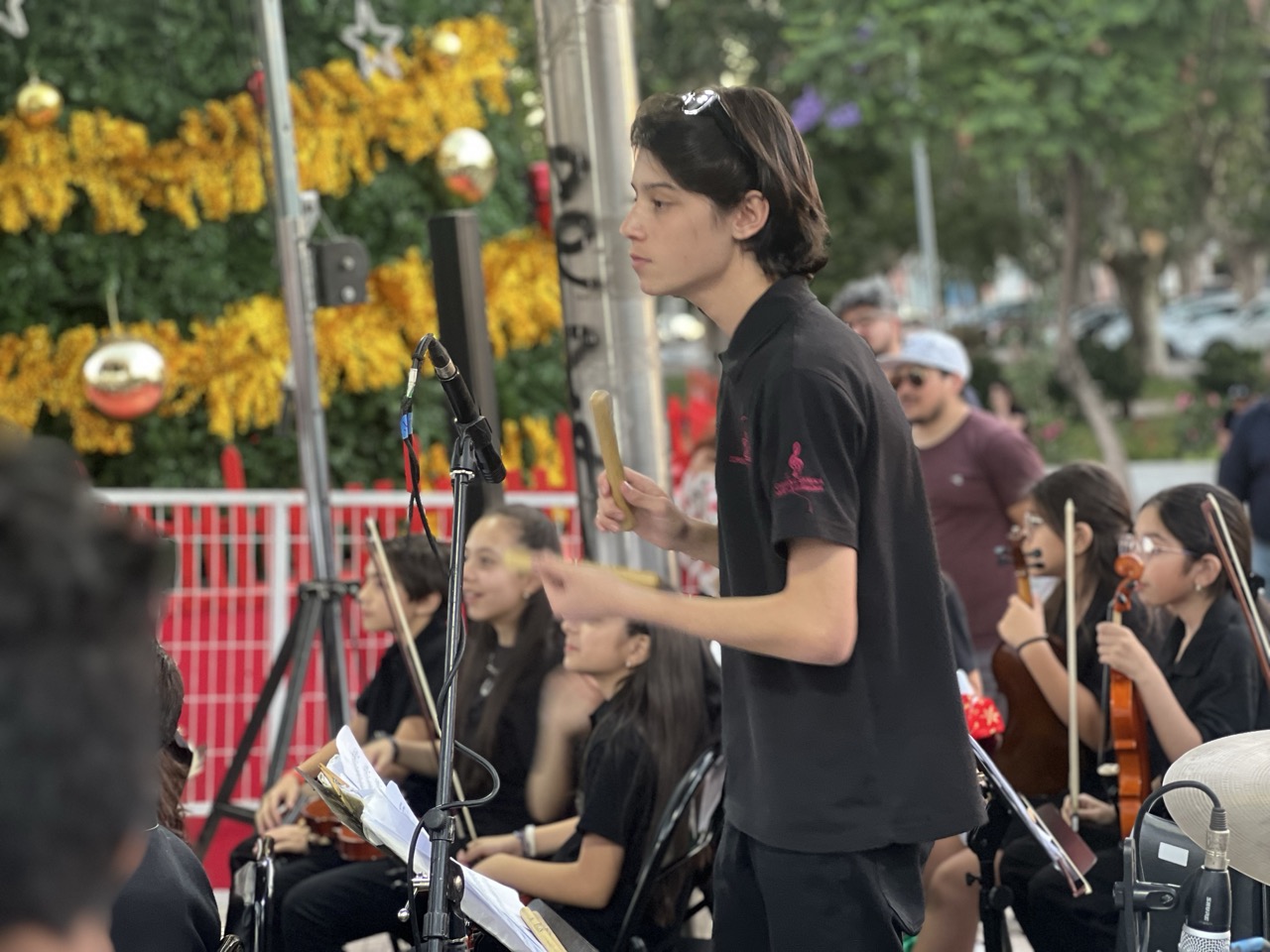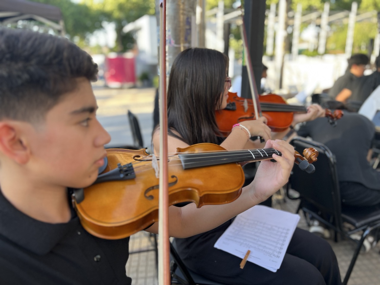 La Orquesta Sinfónica Infantil y Juvenil de Colina se presentó sobre el escenario interpretando un repertorio especial de música navideña y piezas clásicas, generando un ambiente festivo que fue acompañado por la comunidad en un evento abierto y gratuito.