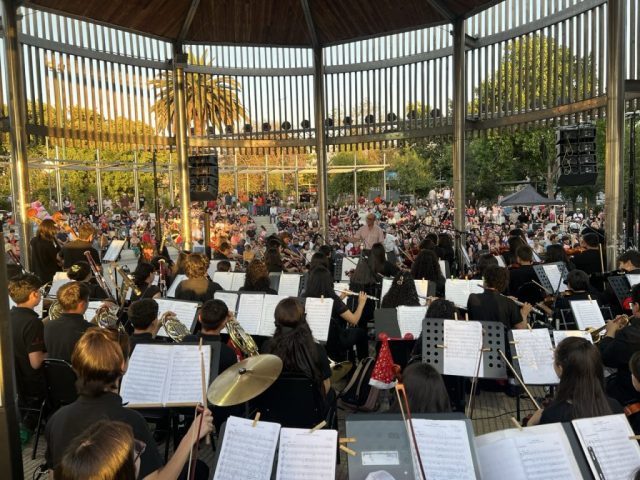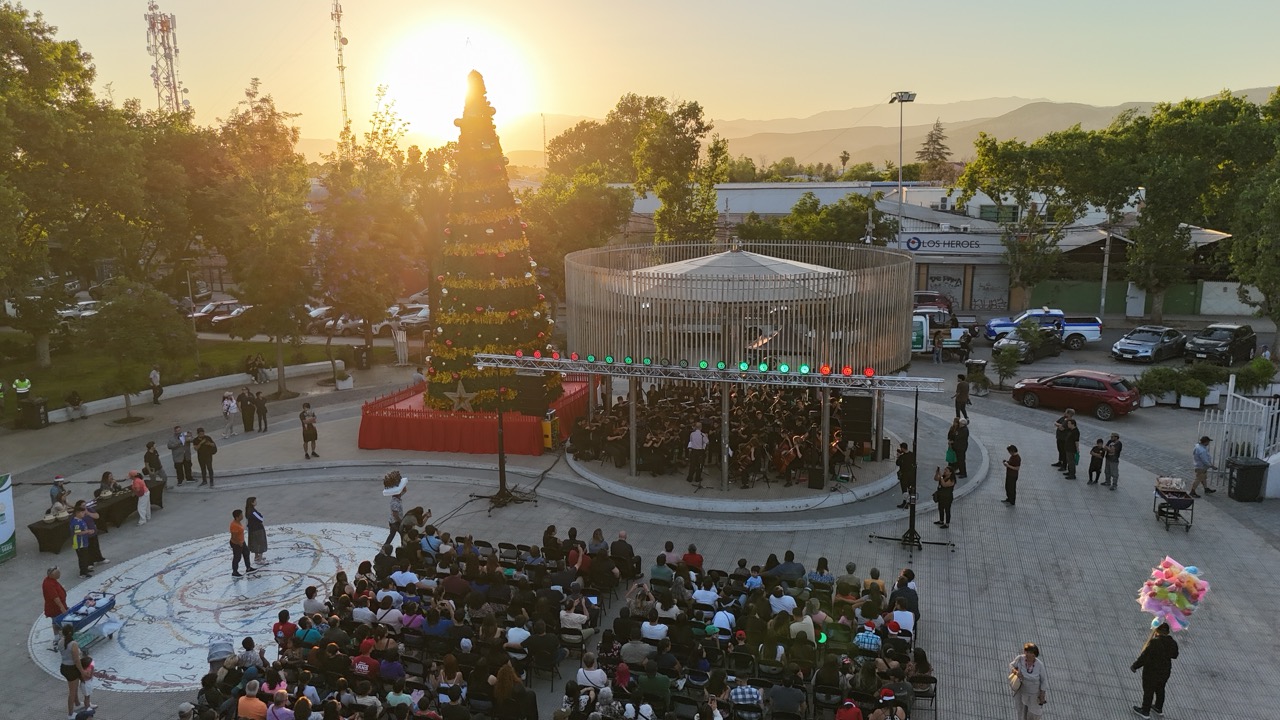 La Orquesta Sinfónica Infantil y Juvenil de Colina ofreció un concierto gratuito en la Plaza de Armas, donde vecinas y vecinos disfrutaron de música en vivo y del tradicional encendido del árbol navideño.