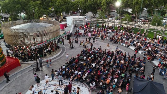 Uno de los momentos más esperados de la jornada fue el encendido del árbol navideño, que iluminó la plaza y dio paso a fotografías, aplausos y la presencia de numerosas familias que asistieron para ser parte de esta tradición comunal.