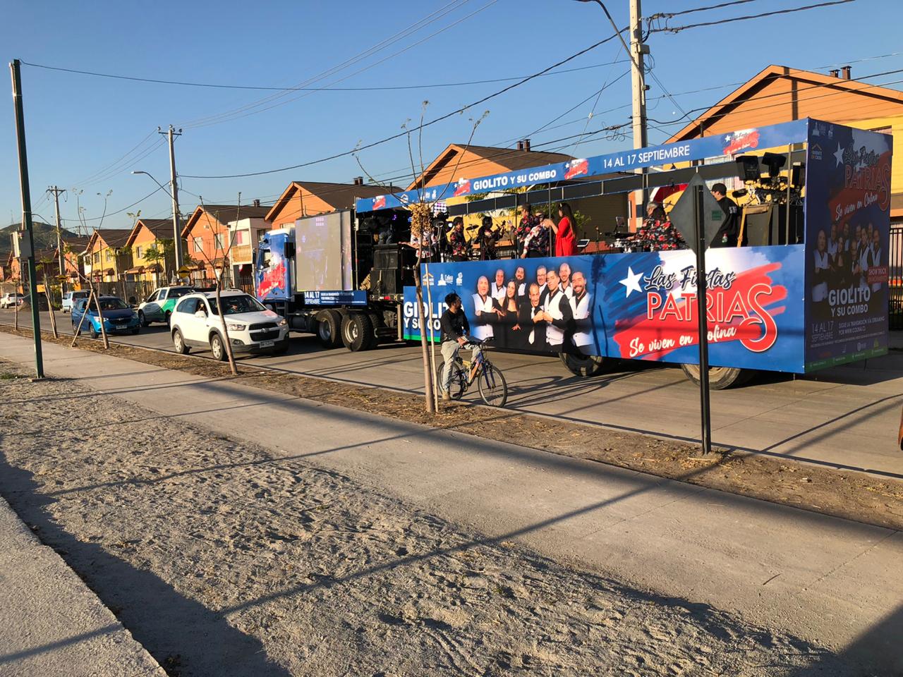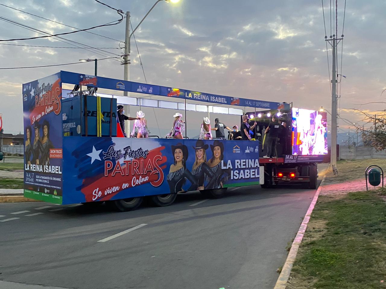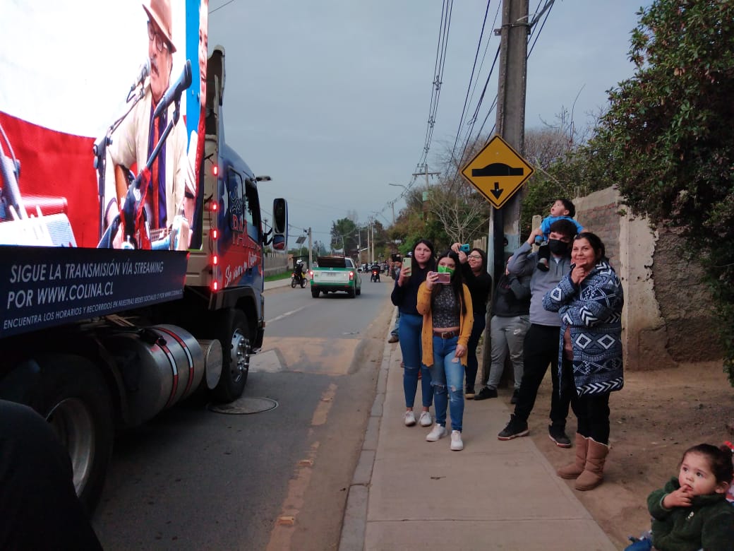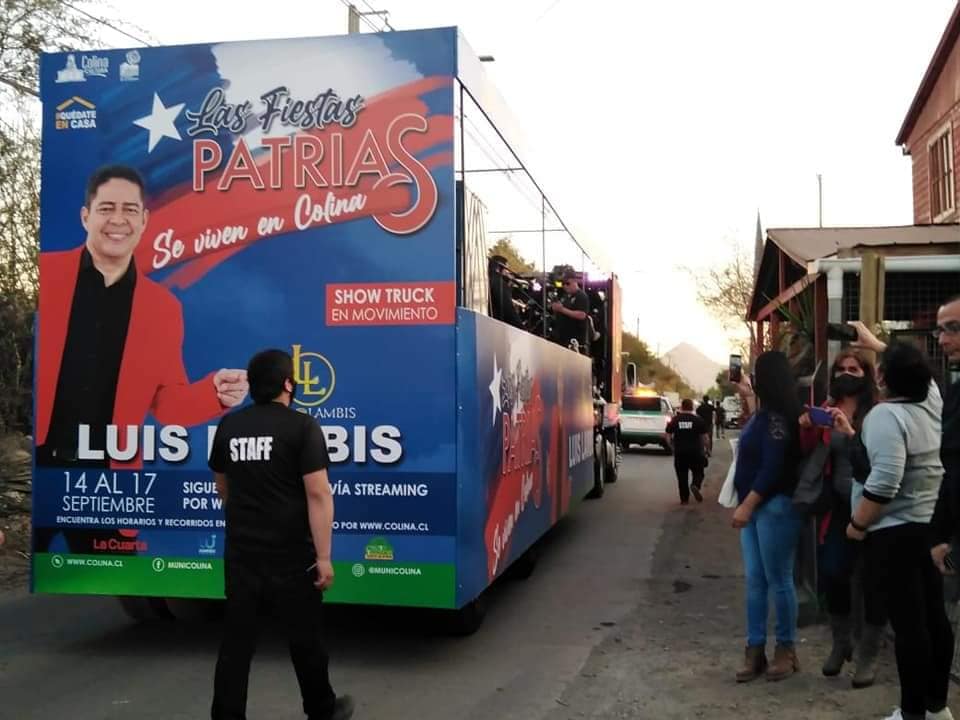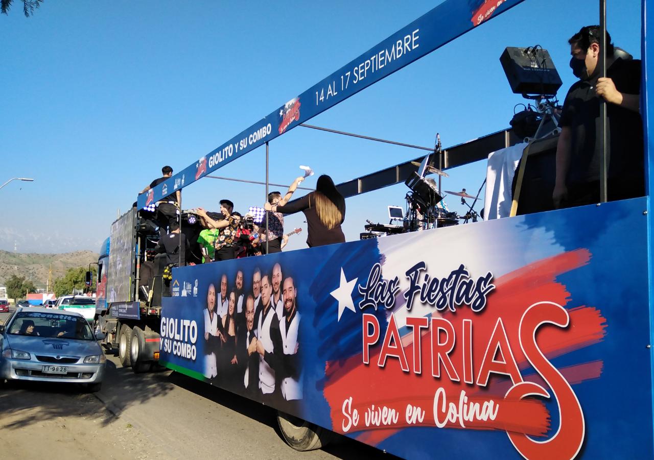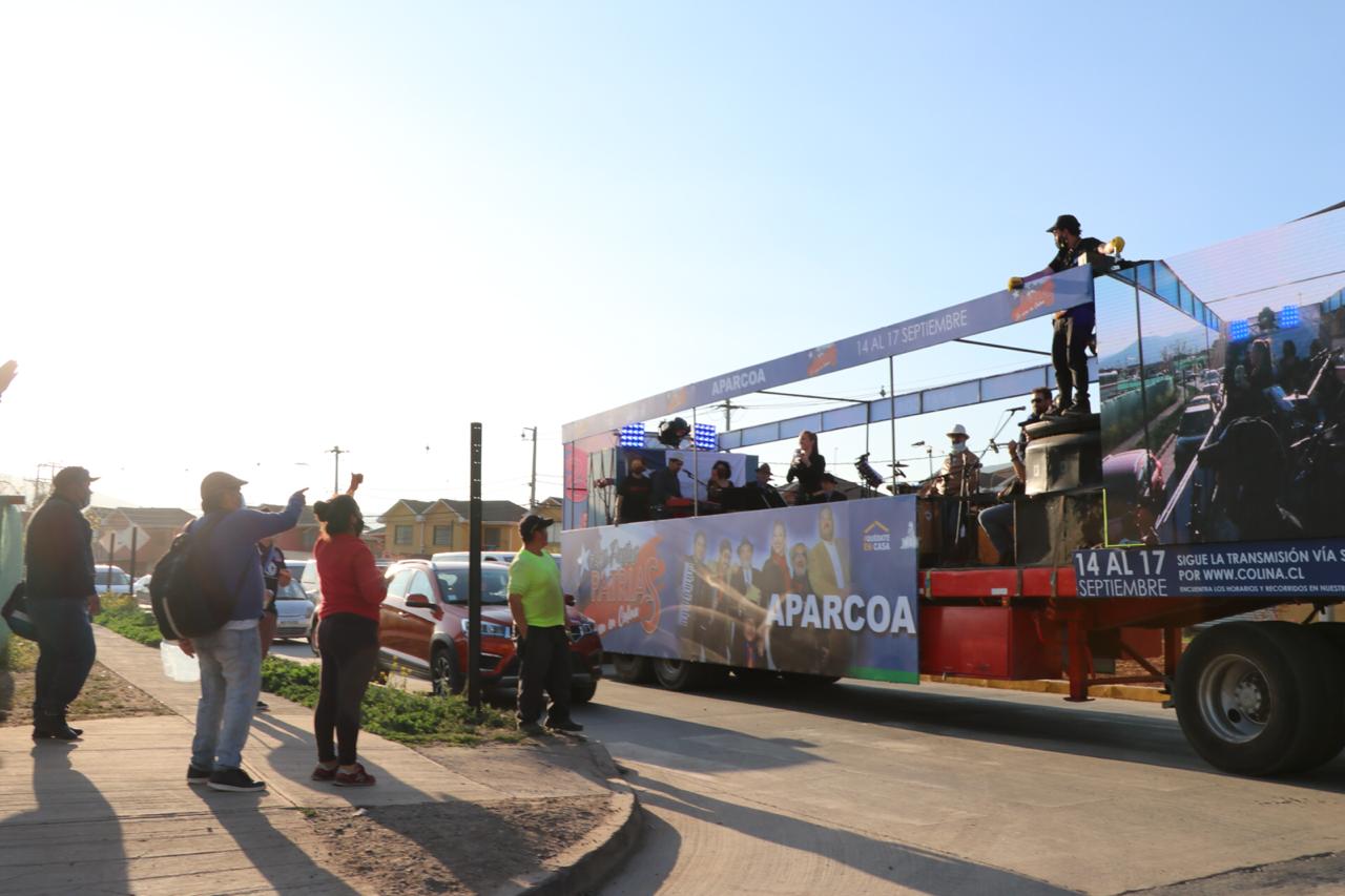 El 14 de septiembre los vecinos de Colina le dieron la bienvenida a las Fiestas Patrias con el lanzamiento de cuatro Show Trucks en movimiento que recorrieron los sectores de Esmeralda, Lo Seco, Los Pinares, Lo Pinto, Quilapilún Alto, Las Canteras, Chacabuco, Chicureo y Colina Centro, entre otros, llevando la música de Aparcoa, Giolito y su Combo, Luis Lambis y La Reina Isabel; y cumpliendo con todos los protocolos de salud y seguridad impuestos por el Ministerio de Salud ante la pandemia de Covid 19.