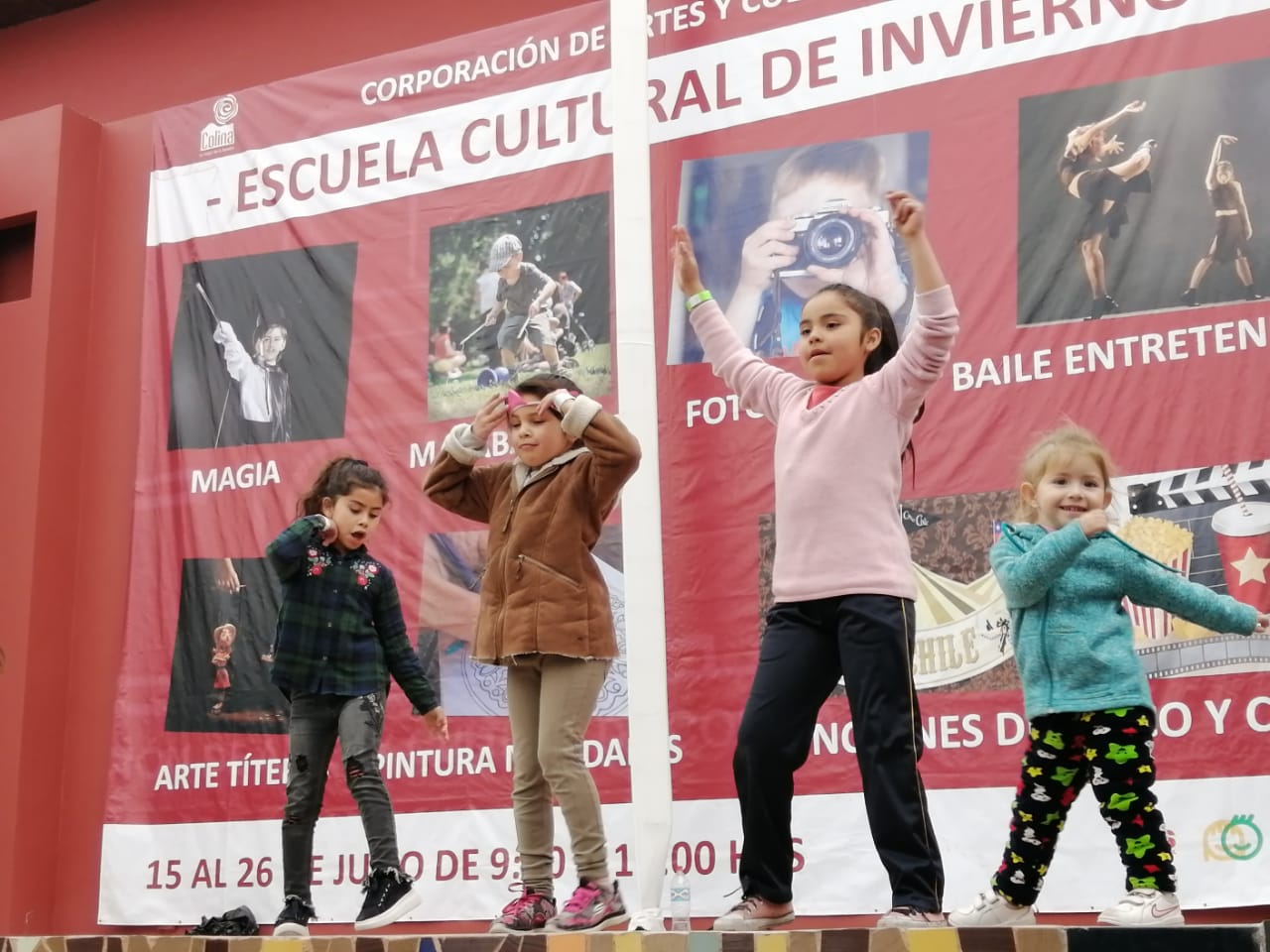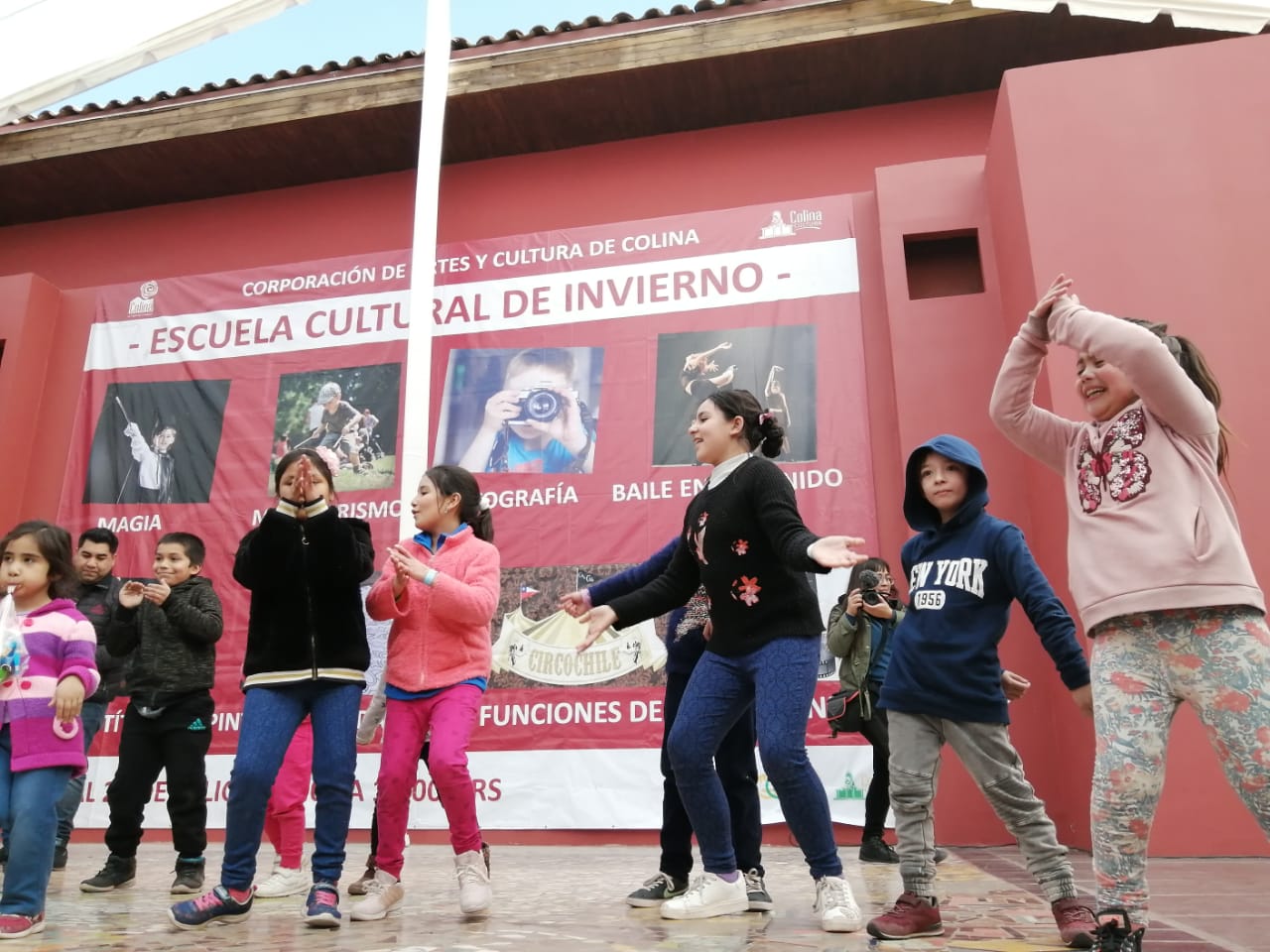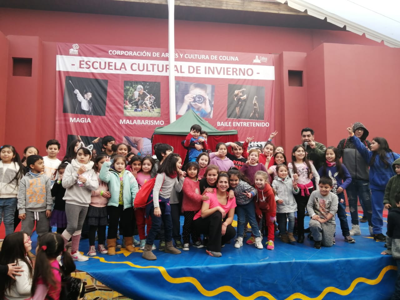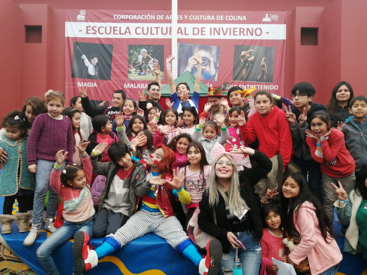 Este 26 de julio finalizó  la segunda edición de la Escuela Cultural de Invierno, un proyecto forjado por  la Corporación de Artes y Cultura de Colina-con el apoyo de la Corporación Municipal de Colina y Colina,Comuna Amiga de la Infancia– en la que 1892 niños de nuestra comuna pudieron iniciar su día con una función de cine para luego aprender y divertirse con el ciclo de talleres que incluyeron  baile entretenido, magia, malabares, pintura de mandala, fotografía  y arte títere, a lo largo de las dos semanas de vacaciones de invierno en las que transcurrió esta actividad.