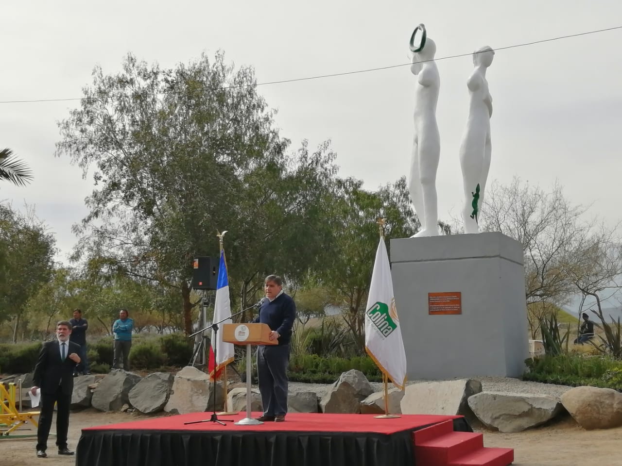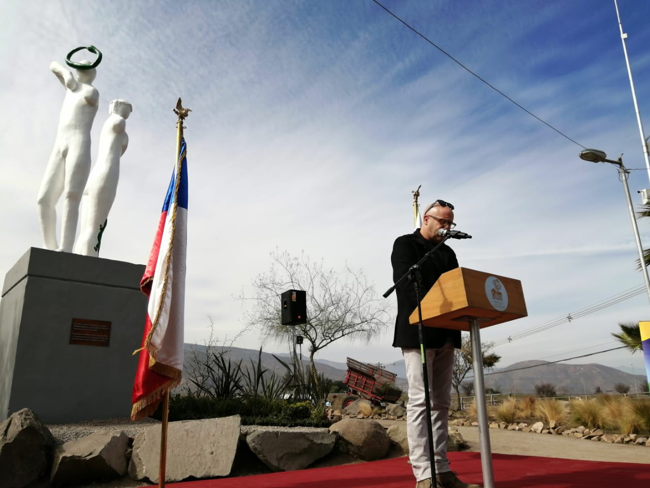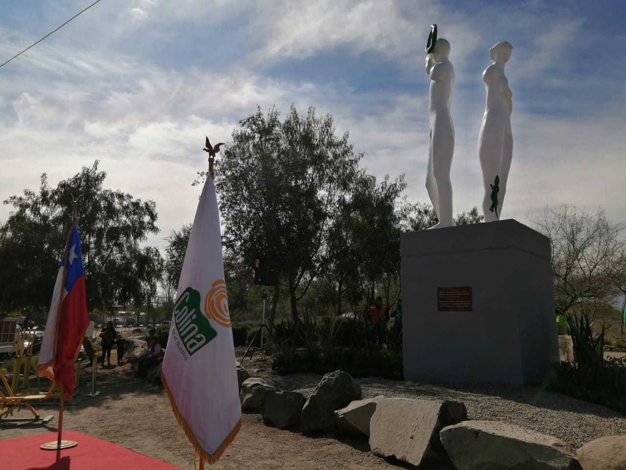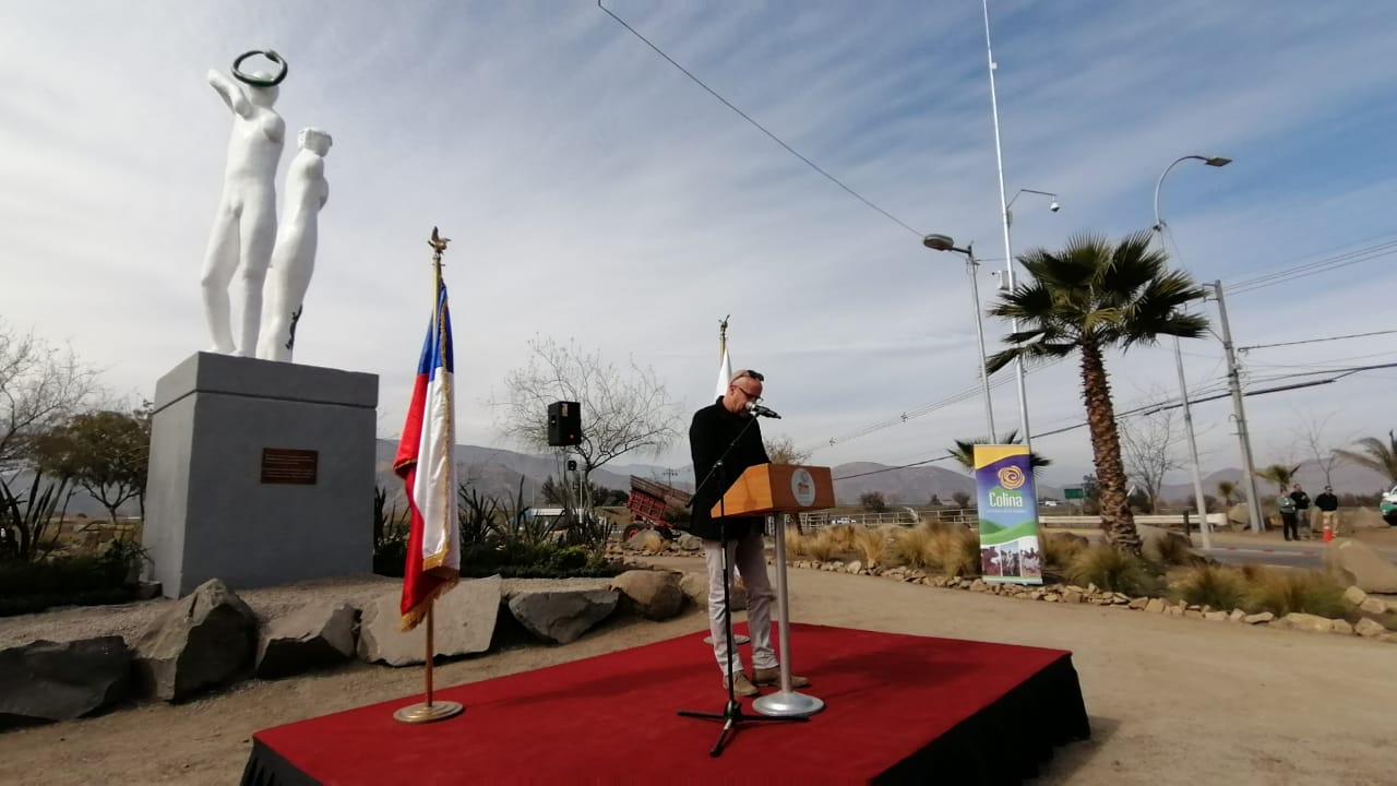 El director ejecutivo de la Corporación de Artes y Cultura de Colina, Rodrigo Opazo, hijo del artista Rodolfo Opazo, dedicó unas palabras a su padre durante su intervención en el acto de reinauguración y afirmó sentirse orgulloso y feliz, pues » lo que pasó con la quema de esta obra el año pasado fue algo nunca visto en Chile y marca un antes y un depués en el espacio urbano (…) hicimos un esfuerzo grande para reinaugurar esta escultura que hizo el papá cuando estaba vivo,especialmente para Colina». Asimismo afirmó que tanto para la Corporación de Artes y Cultura de Colina, como para el alcalde Mario Olavarría, la presencia de obras artísticas,  como mosaicos, pinturas, murales y esculturas, en toda la comuna y en su espacio urbano es tema importante, ya que » queremos que Colina sea una comuna pionera en el arte».