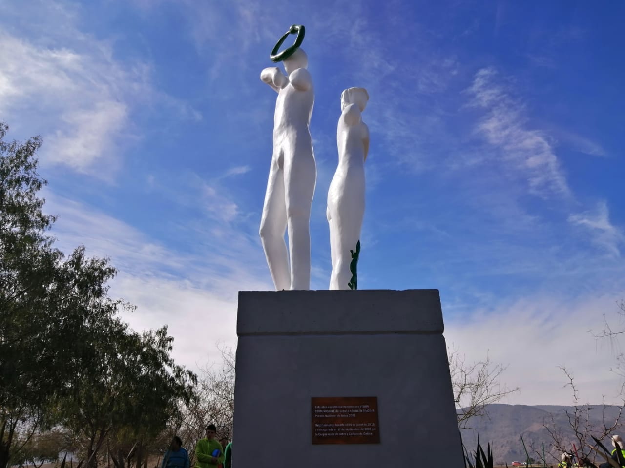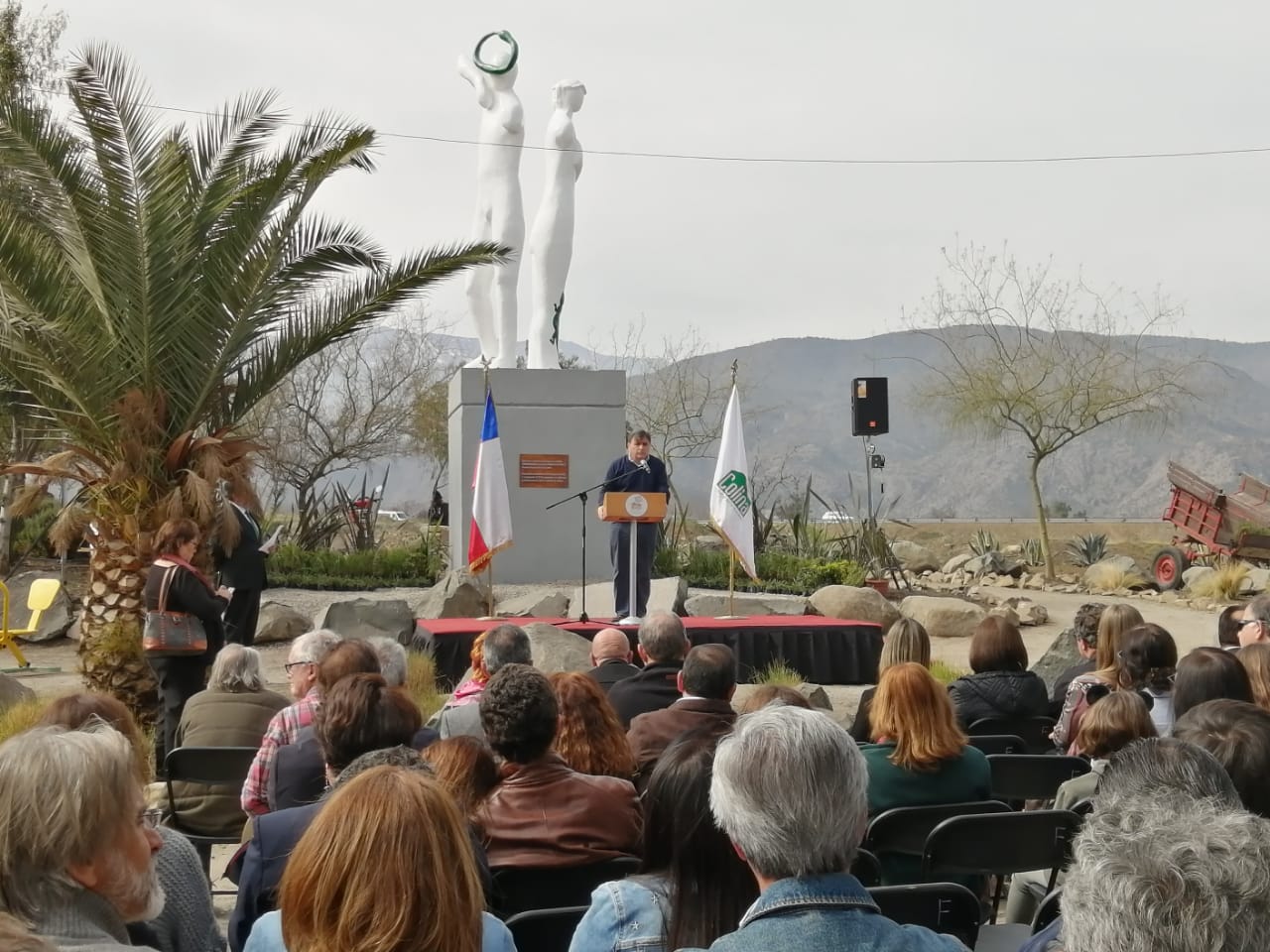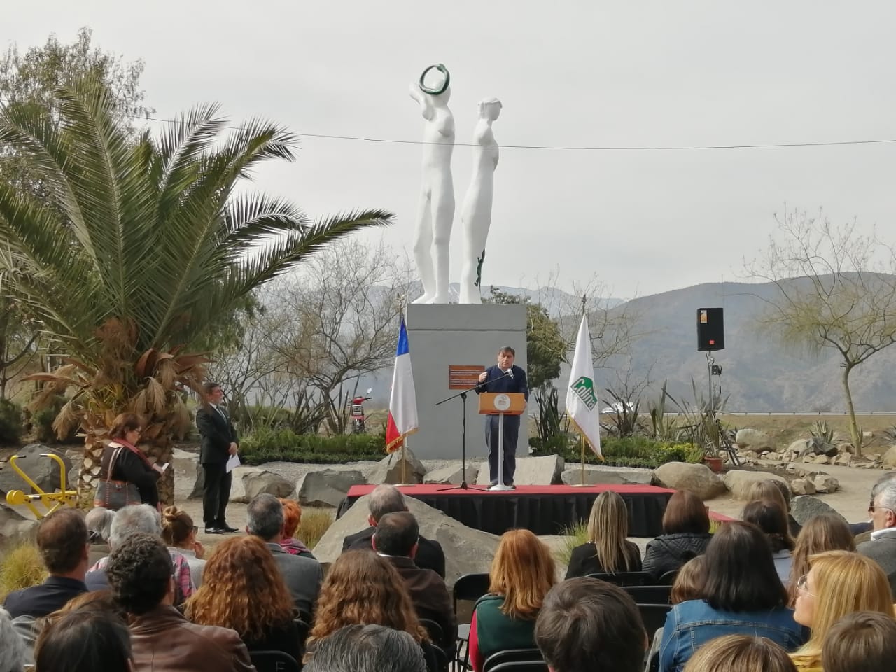 El director ejecutivo de la Corporación de Artes y Cultura de Colina, Rodrigo Opazo, hijo del artista Rodolfo Opazo, dedicó unas palabras a su padre durante su intervención en el acto de reinauguración y afirmó sentirse orgulloso y feliz, pues » lo que pasó con la quema de esta obra el año pasado fue algo nunca visto en Chile y marca un antes y un depués en el espacio urbano (…) hicimos un esfuerzo grande para reinaugurar esta escultura que hizo el papá cuando estaba vivo,especialmente para Colina». Asimismo afirmó que tanto para la Corporación de Artes y Cultura de Colina, como para el alcalde Mario Olavarría, la presencia de obras artísticas,  como mosaicos, pinturas, murales y esculturas, en toda la comuna y en su espacio urbano es tema importante, ya que » queremos que Colina sea una comuna pionera en el arte».
