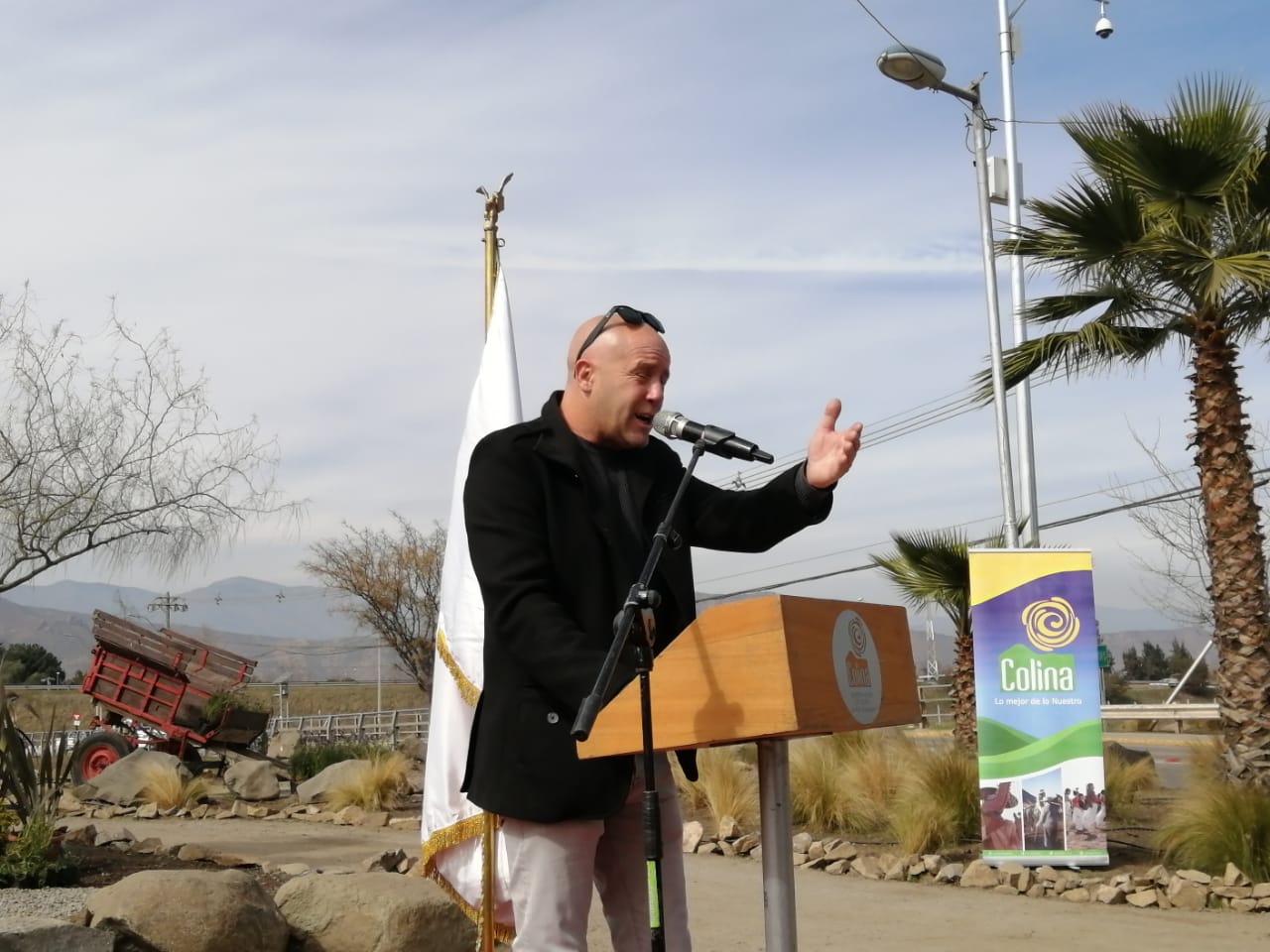 Por su parte el Alcalde Mario Olavarría describió la inauguración como » un día bien importante, porque desde hace un tiempo hemos querido incorporar el tema cultural en nuestras obras para que la gente disfrute de sus artistas y conozca el trabajo que complementa el espacio urbano (…) la reconstruimos porque Colina se lo merece y no podemos dejar que un mal acto nos detenga (…) aquí hay un conjunto de cosas y es la expresión artística con espacios de buen equimamiento para que las personas puedan tener una mejor calidad de vida».