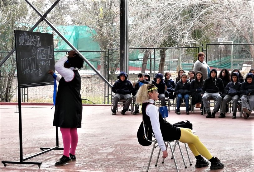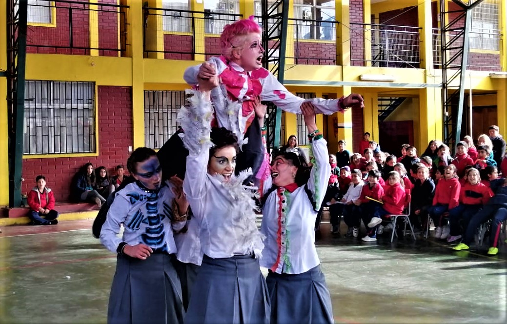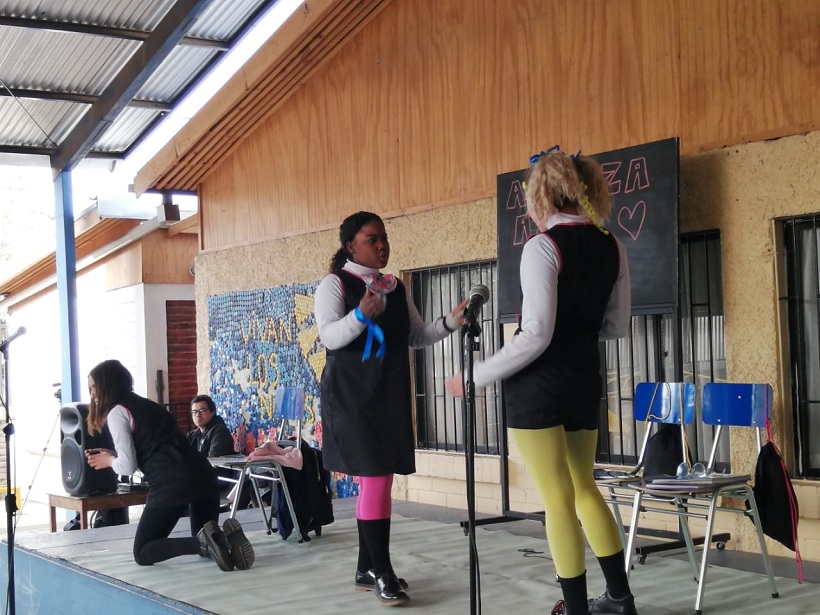 “Extraña” ( teatro) y “El primer día del pájaro sobre la rama” (danza) son las puestas en escena que fomentan el respeto y la aceptación dentro de los planteles estudiantiles y a nivel social de una manera lúdica gracias a los elementos del arte. Éstas se han presentado también en los colegios San Sebastián, Santa María de Esmeralda, Rigoberto Font y el Liceo Sembrador; hasta el 20 de junio tendrán función en instituciones como el Liceo Esmeralda, Santa Marta de Liray, Elsa Ulrich, Pablo Neruda, Marco Goycolea, Andalien, entre otros.