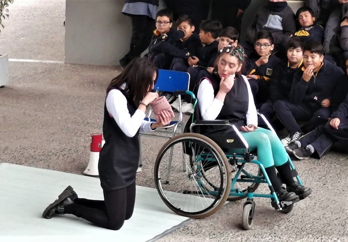 «Nuestra motivación es que a través del arte podamos informar y educar sobre lo que es la discriminación, lo que es inclusión, sobre cómo cada una de las personas tanto niños como adultos puede hacer una diferencia positiva en la vida de otro. El objetivo principal es que entendamos que todos somos diferentes, pero todos tenemos los mismos derechos y merecemos respeto. Para lograr esto, se buscó sacar ejemplos de la vida cotidiana de los colegios para que la experiencia fuera más cercana y concreta», explicó Lesslie Bucarey C., Jefa del Departamento de Inclusión de la Corporación.