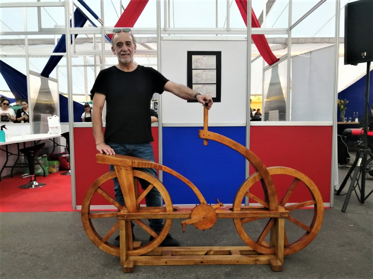 En la feria se expuso un prototipo de lo que fue el proyecto de la bicicleta creada por da Vinci que estuvo a cargo del diseñador Oscar Castillo. “ Esta bicicleta esta basada en los dibujos de da Vinci y en la información que existe sobre Leonardo (…) usé madera terciada que se ensambla en varias piezas y está en escala 1:1 con el mismo alto y el mismo largo de una bicicleta actual, pero con el diseño original», explicó Castillo.