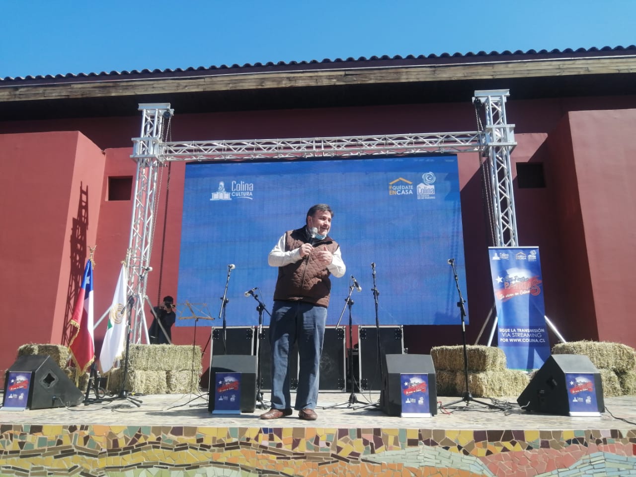 «Estamos en una época muy compleja, con restricciones para todos los chilenos, pero hemos querido hacer algo, cumpliendo con todos los protocolos, que demuestre nuestras Fiestas Patrias, nuestra cultura y tradiciones, como somos aquí en Colina. Por eso hemos desarrollado un programa de 4 días, desde el 14 hasta el 17 de septiembre en donde cuatro camiones escenario van llevar en recorrido a los grupos nacionales e internacionales por los diferentes sectores de la comuna, y cada familia va a poder disfrutar de estos cuatro espectáculos durante los cuatro días», explicó el jefe comunal sobre la modalidad del evento.