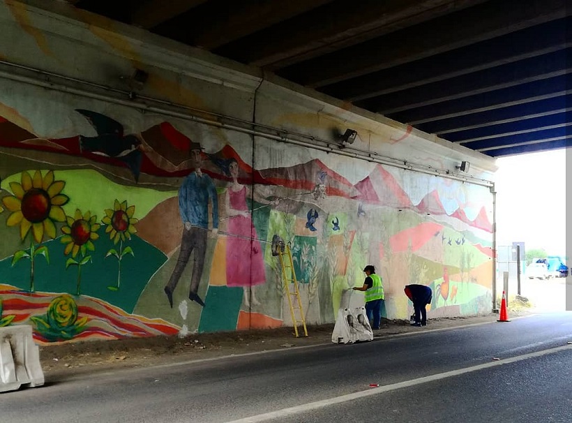 Este mes de enero iniciaron las restauraciones de cuatro murales representativos de Colina que desde hace cinco años acompañan a los caminantes en sus pasos peatonales. Ubicados en San Luis, Chicureo, Esmeralda y Lo Pinto, estas paredes decoradas serán devueltas a su estado incial para seguir dando vida a las vías de la comuna.